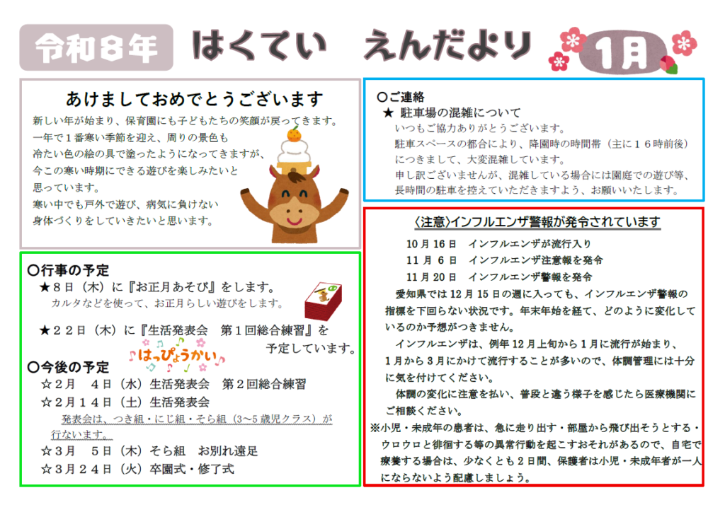 2026.01.05 園だより2026年1月号を公開しました
